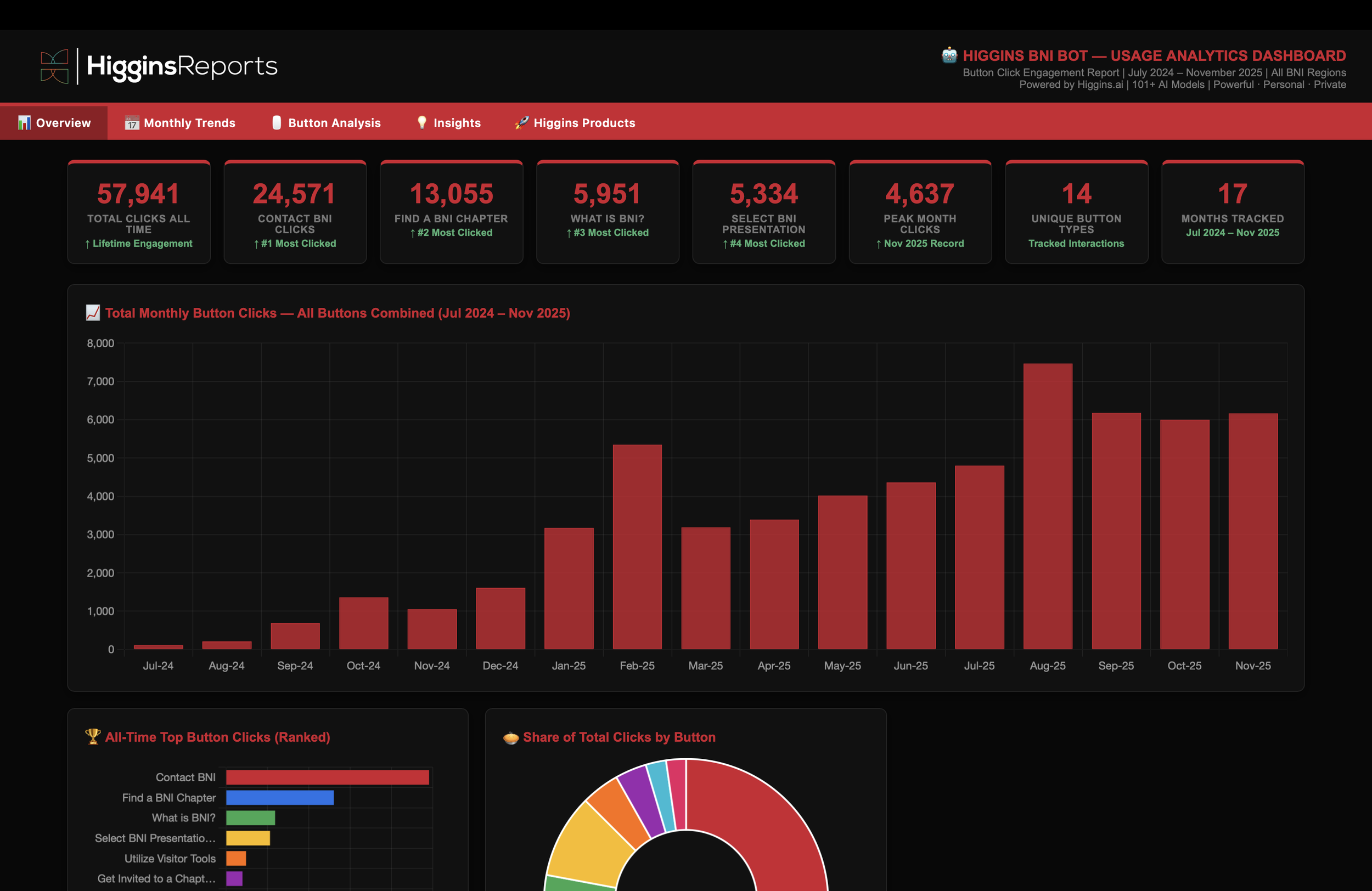 HigginsReports are provided “Full Serve” right to your inbox and privately accessible in your AskBNI AI app. These regional dashboards are powerful tools that can provide your business a monthly roadmap with achievable, realistic goals based on deep analysis of your sales growth potential. You can also reach out to the associates throughout your business that need you the most to coach them to success with personalized emails and easy to follow steps on how they can meet their sales or operational goals. All this can be performed in the business dashboard with a click of a button!